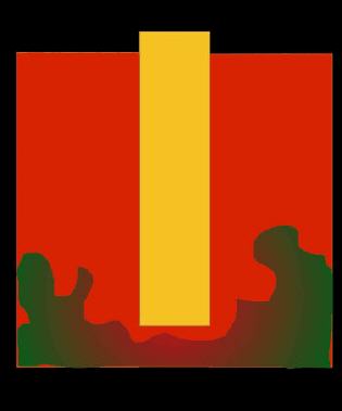 Andererseits begegnet uns im goldenen, kleinen Rechteck, zu dem unsere Betrachtung zurückgekehrt ist, nicht nur rein der Eine. Er ist in sich reflektiert. Genau wie das Verbrennen oder das Feuermeer, den Einen oder das strahlende Gelb an sich hat oder in sich trägt, trägt auch der Eine das Verbrennen in sich. Der Eine nämlich, wenn Sie hinschauen, werden Sie es erkennen, ist geteilt in gold-gelb und blutrot. Während der Eine, das Gold (kleines Rechteck), im Verbrennen (im großen Rechteck) gewissermaßen versteckt ist, schwer zu entdecken, in seinen Konturen weich und überall zu finden, begegnet uns hier in dem Einen das Verbrennen, das Feuermeer als Grund, auf dem er 110fach erscheint. Das Goldene macht also das Rote zunichte oder verbrennt es, wenn wir in der Sprache der Apokalypse bleiben. So gesehen, ist dieser Eine dann wiederum das Vernichten (Verbrennen) des Verbrennens, der Tod des Todes oder das Erretten oder das Leben.