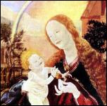 Versuchen wir, das Gesagte an einem Marien-Bild zu exemplifizieren. Was soll dargestellt werden? Was ist der Gegenstand dieses Bildes? Wenn wir sagen: Maria mit dem Kind ist das wohl richtig, aber nicht wahr. Der wirkliche Gegenstand ist die Liebe der Mutter (Maria) zu ihrem Kind. Die Liebe, dieses innere, seelische Tun soll sichtbar werden. Sie drückt sich aus in der Blickrichtung, in der Kopfhaltung, in der Mimik, in der Gestik, in der Farbgebung (die Farbe bringt das Gefühl, das seelische Leben ins Bild) und in der Beziehung der Farben zu einander. Um in diesem Bild die Liebe zu entdecken, müssen wir unsere Aufmerksamkeit von den bloßen Formen ablenken. Wenn wir nämlich beharren und in den naturgetreuen Formen, in der Figürlichkeit die Schönheit dieses Bildes zu finden glauben, dann suchen wir wohl die liebende Maria, finden aber immer nur eine unbewegte, tote Hülle. Ich zeige ihnen Ausschnitte anderer Marienbilder.
