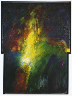 Aber selbst in diesem Bild wird das Grauen gemildert. Im oberen Teil des Bildes glänzt eine schwebende Hülle leuchtender Farbigkeit. Gold, die Farbe Gottes, schimmert hervor. Sie versöhnt, löst die Konflikte, Gegensätze und Verwicklungen. Diesem Himmel voller Polarsterne gilt es sich anzuvertrauen.